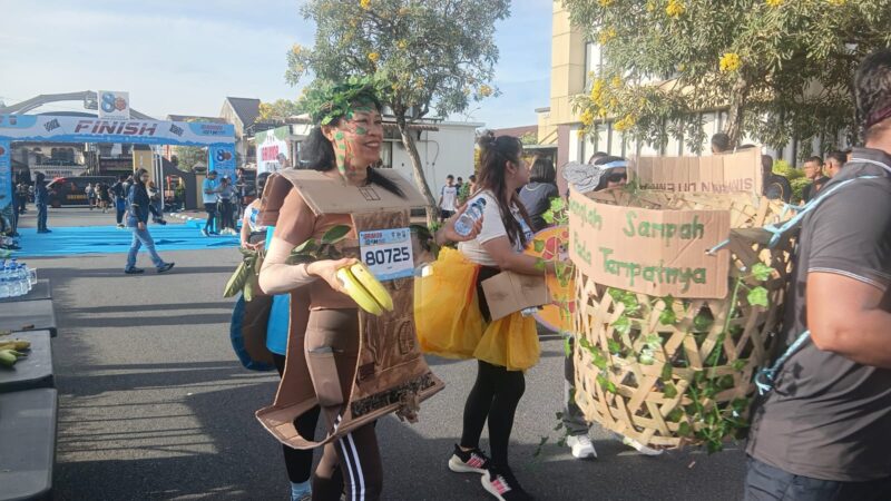 Para peserta tampil penuh kreativitas, mengenakan kostum bertema alam dan kebudayaan Nusantara yang menambah warna pada acara lari bersama tersebut.
