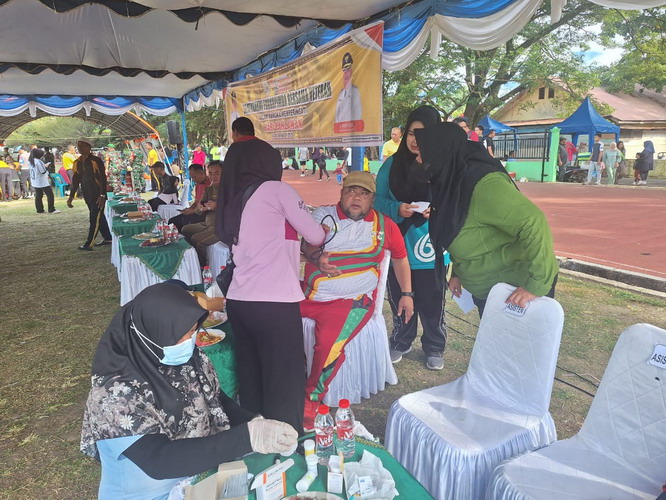 Selain senam pagi, warga juga mendapatkan layanan pemeriksaan kesehatan secara gratis yang meliputi pengukuran tekanan darah, gula darah, kolesterol, tinggi dan berat badan. Pemeriksaan dilakukan langsung oleh tim tenaga kesehatan dari Puskesmas Lawe Dua.