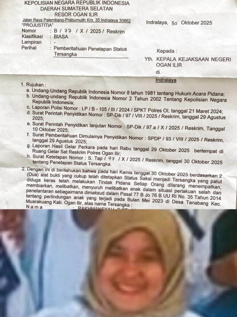 OGAN ILIR — Dugaan penelantaran anak dan mantan istri yang melibatkan oknum Aparatur Sipil Negara (ASN) di Kabupaten Ogan Ilir kini memasuki babak serius dan berpotensi melanggar hukum pidana serta etika kepegawaian negara. Oknum ASN berinisial R (39), yang menjabat sebagai Kepala UPTD (LLK), diduga melakukan nikah siri pada tahun 2023 lalu, memutus nafkah, serta menelantarkan dua anak kandungnya dan mantan istri berinisial EN (36), yang juga berstatus ASN di sektor kesehatan.