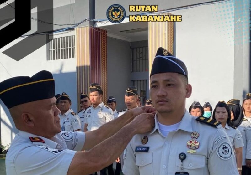 Kepala Rutan Kabanjahe, Bahtiar Sembiring, langsung menyematkan pangkat baru disaksikan oleh seluruh pejabat struktural dan petugas Rutan Kabanjahe.
